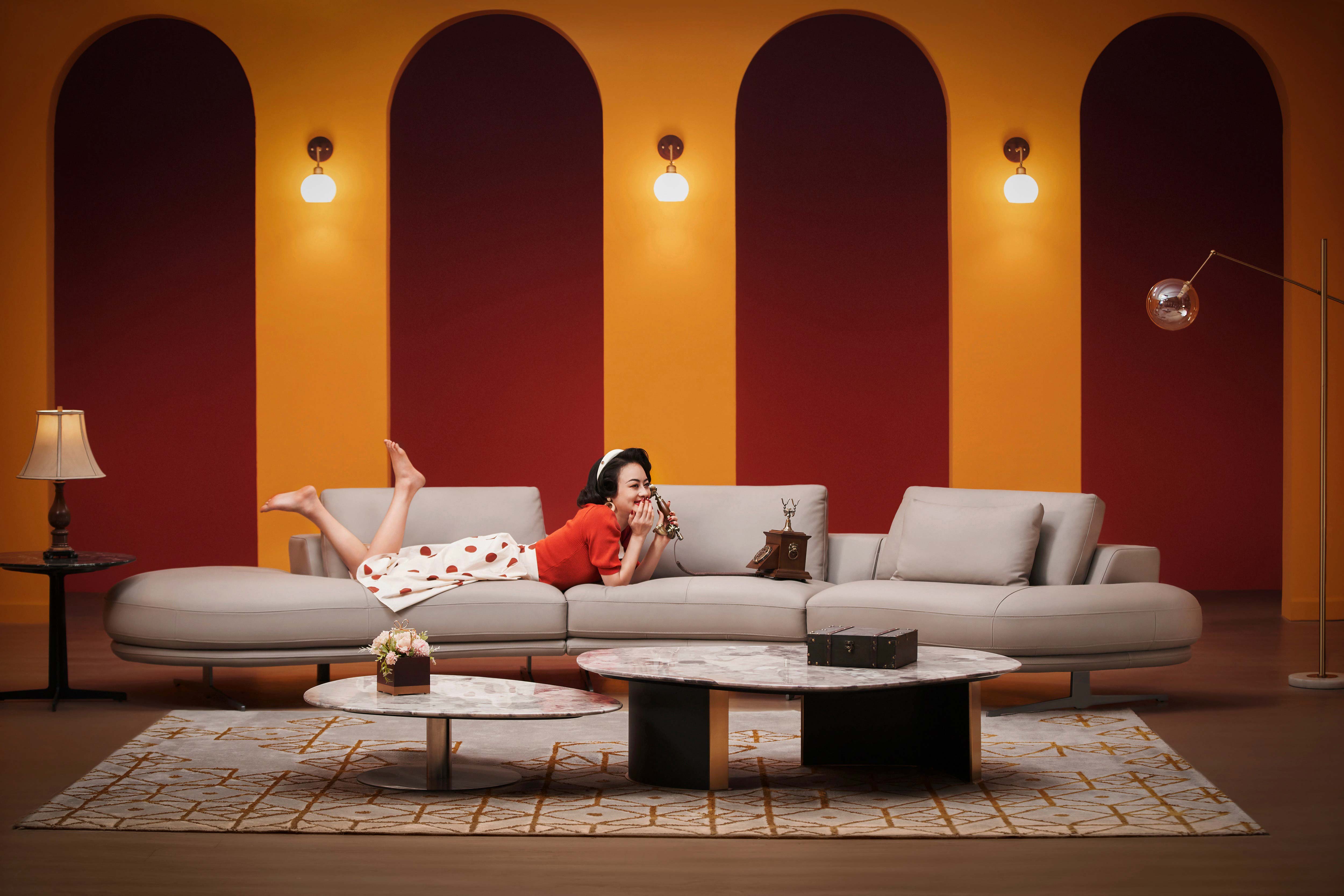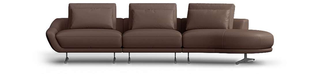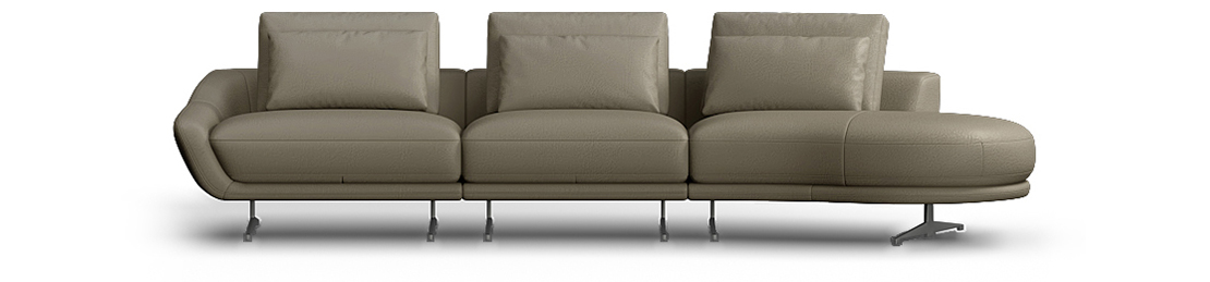 沙发整体圆弧形设计,完满地勾勒出沙发优雅柔美的线条,